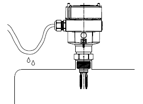 當儀表安裝在戶外或有潮氣的環境中,如遇到下雨或村在冷凝現象時,雨水和冷凝水便會隨之往下流,所以在接入電纜之前,請將電纜線彎曲并朝下引,以防止水或潮氣進入儀表,如圖3所示。