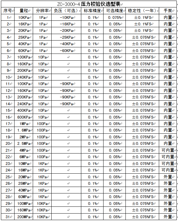 ZC-3000-4壓力校驗儀的技術(shù)參數(shù):